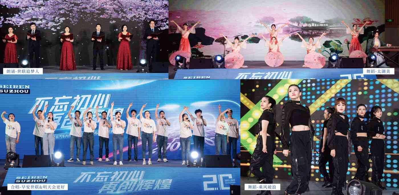 经过20年的发展,苏州世联已经成为世联集团中不可或缺的重要存在,这其中凝聚着无数员工的汗水和智慧。本次庆典上对多位为公司创立、建设和发展中作出卓越贡献的人物进了荣誉表彰。同时,苏州世联员工们通过原创诗朗诵、舞蹈、合唱等多元艺术形式的碰撞,展现了世联的风采。